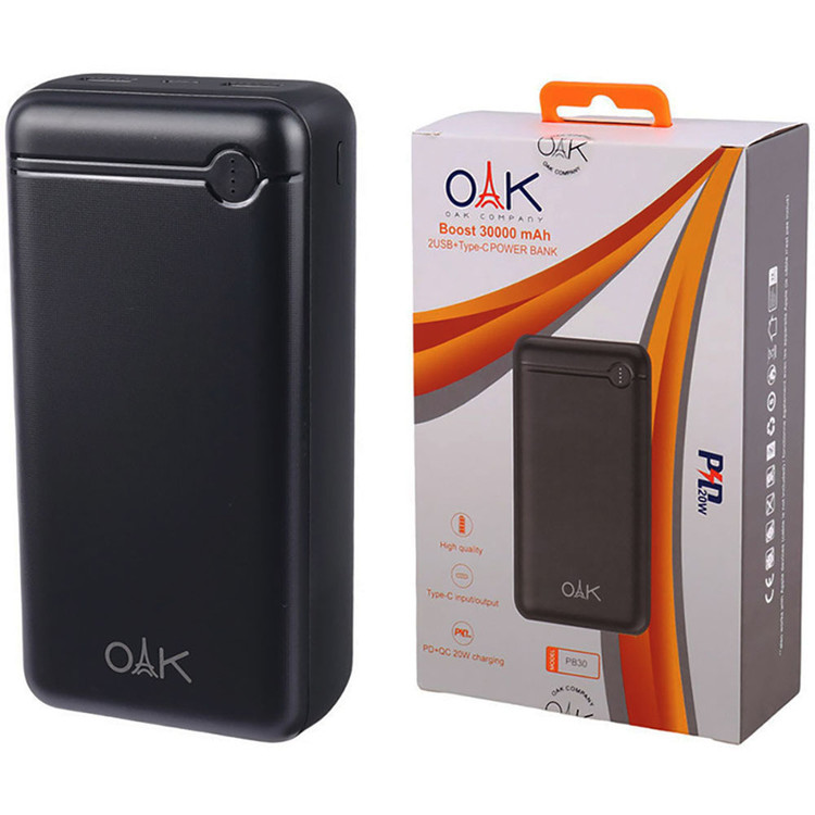 پاوربانک فست شارژ 30000 میلی‌آمپرساعت OAK – شارژ سریع و مطمئن با تکنولوژی QC و PD 20W