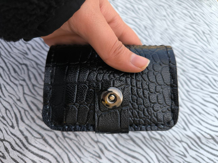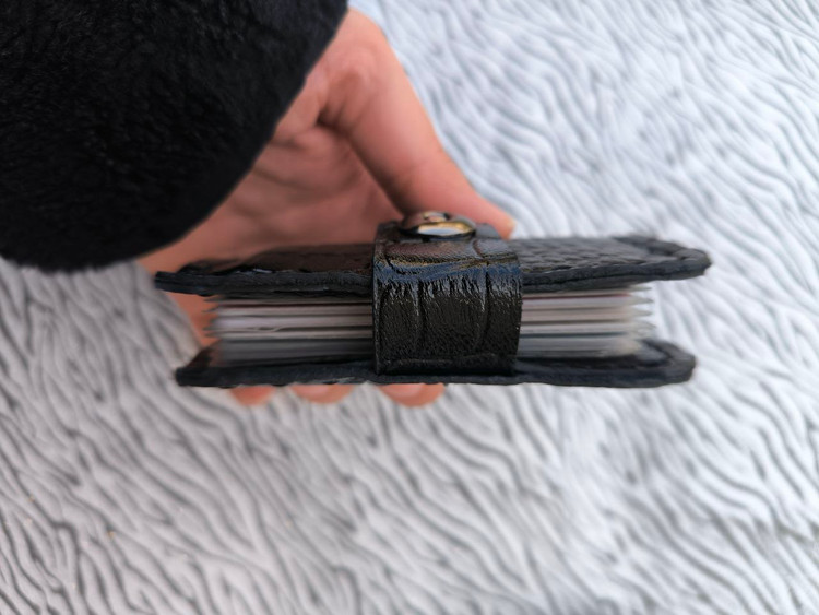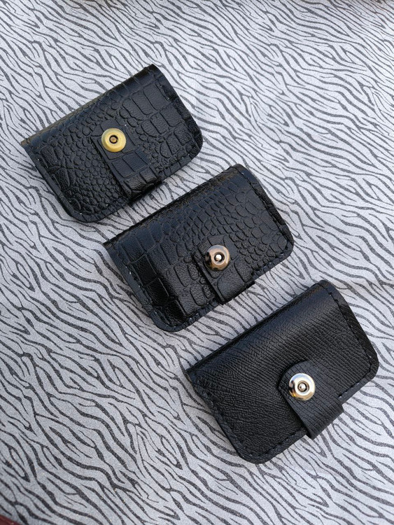 کیف کارت و پول چرم بزی مشکی و طوسی