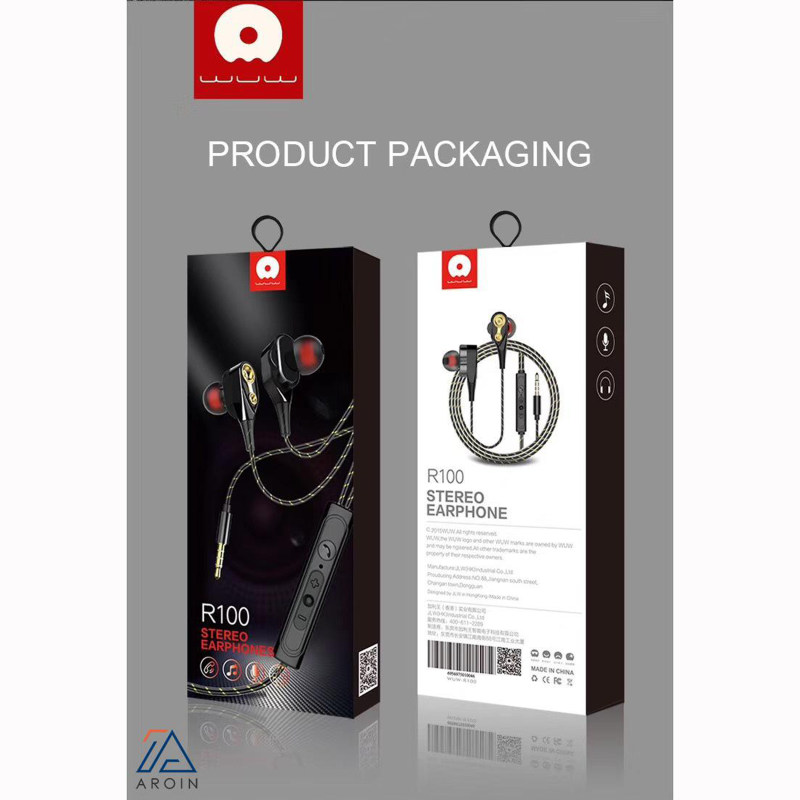 هندزفری سیم دار دبلیو یو دبلیو مدل R100 یک محصول فوق العاده با کیفیت با طراحی ارگونومیک و در عین حال با قیمت مناسب است که توسط کمپانی دبلیو یو دبلیو به بازار عرضه شده است. این هندزفری مانند سایر نمونه های موجود در بازار برای اتصال به دستگاه هوشمند شما از یک جک 3.5 میلی متری استفاده می کند. این هندزفری می تواند به انواع دستگاه های هوشمندی که از جک 3.5 میلیمتری بهره می برند متصل شود و عملکرد مطلوبی را در اختیار شما قرار دهد. هندزفری دبلیو یو دبلیو مدل R100 از وزنی بسیار سبک در حدود 30 گرم بهره می برد که این موضوع باعث می شود شما برای مدت طولانی از این هندزفری سیم دار با کیفیت استفاده کنید و اصلا احساس خستگی نکنید. علاوه بر آن هندزفری در برابر رطوبت و عرق بسیار مقاوم می باشد بنابراین بسیار مناسب برای ورزشکاران است. همچنین شما می توانید با خیال راحت در تمام طول روز از آن استفاده کنید و اصلا نگران این نباشید که عرق گوش شما به آن آسیبی برساند. ساختار هندزفری دبلیو یو دبلیو مدل R100 بسیار متناسب با ساختار گوش شما است و احساس خوبی را هنگام استفاده از این هندزفری خوش ساخت؛ برای شما به ارمغان می آورد. این محصول می تواند با حذف نویز محیط صدایی واضح و با کیفیت را به شما ارائه دهد. شما می توانید به وسیله این محصول به تماس های تلفنی خود پاسخ دهید و مکالمه ای با کیفیت را تجربه کنید. این هندزفری همچنین این امکان را برای شما فراهم می کند تا مدیریت تماس ها، پخش موسیقی و میزان صدا را به دست بگیرید. هندزفری دبلیو یو دبلیو مدل R100 نیز به علت بهره مندی از قیمت معقول و مناسب طرفداران زیادی دارد و توانسته است تا با استفاده از کیفیت بالا رضایت کاربران خود را تا حد زیادی جلب کند.