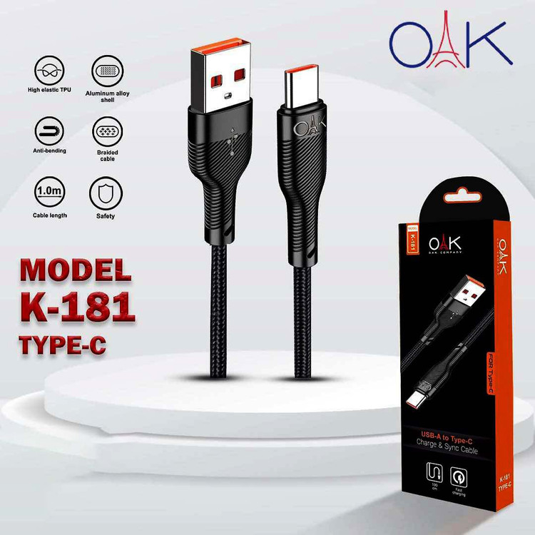 ⚡ کابل شارژ OAK مدل K-181 تایپسی | شارژ سریع، دوام بالا، کیفیت تضمینی