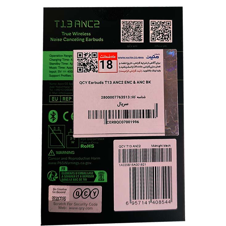 🎧 ایرفون بلوتوثی QCY مدل T13 ANC2 | حذف نویز فعال + گارانتی ۱۸ ماهه متین
